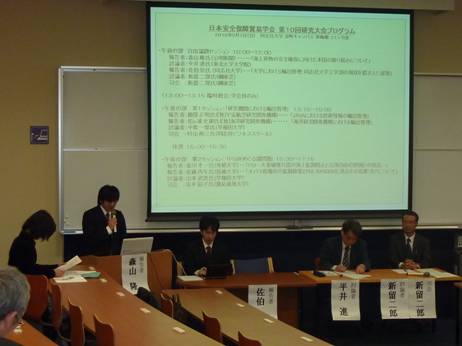 第10回日本安全保障貿易学会研究大会は約60名の参加者を得て2010年3月7日(日)に同志社大学にて開催された。今回、午前の部自由論題セッションでは「海上貨物の安全確保に向けた米国の取り組みについて」、と「大学における輸出管理:同志社大学工学部の現状を踏まえた提案」の2件の発表があった。後者の発表では輸出管理に関する大学関係者の現状認識と本音が紹介され課題が提示された。いずれの発表も午後の部のテーマセッションにも関連する内容であり議論の幅を広げることができた。午後の部第1セッションでは、このところ関心が高まっている大学における輸出管理を含めた「研究機関における輸出管理」を2つの研究機関のそれぞれ現場の管理状況が、また第2セッションでは国際法および国際政治の観点から、不拡散が失敗した場合の措置として過去数年有志国が実施する「PSIをめぐる諸問題」について発表が行われた。