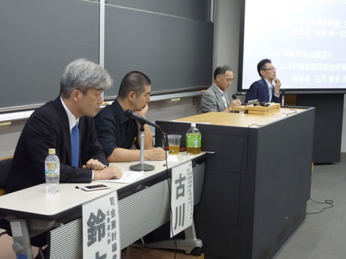 古川氏より国連安保理対北朝鮮制裁委員会・専門家パネルメンバーとしての経験から、北朝鮮がとった制裁回避行為の実際、日本企業が巻き込まれた事案など豊富な事例が紹介された後、日本がなすべきことは何か、等の考察が行われた。すなわち、国連安保理決議2270採択後の国内法改正の早急な成立を行うべきこと、資産凍結対象の拡充、安保理決議違反者に対する制裁措置の徹底、経産省エンドユーザーリストに安保理が摘発した企業などを入れる事などが提案された。更に、東南アジア諸国へのアウトリーチの実施、貨物検査ネットワーク構築の必要性、また、企業に対してはknow your customerの更なる改善の提案がなされた。
