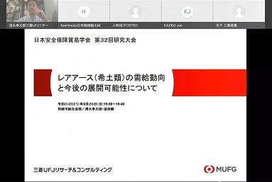 今回は、自由論題セッションで1件、テーマセッションで「産業構造審議会 通商・貿易分科会 安全保障貿易管理小委員会 中間報告(令和3年6月10日公表)をめぐるパネルディスカッション」、及び、「サプライチェーンの見直し((バイデン政権100日レビューを受けて」の二つのテーマをとりあげた。今回もオンラインでの学会開催であったが、多数の参加者に聴講いただいた。