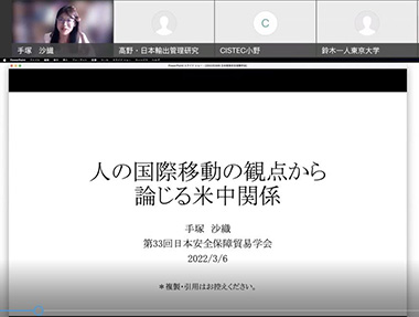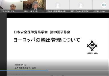 第33回日本安全保障貿易学会研究大会は、新型コロナウイルスの影響で2022年3月6日(日)にOnlineにて78名の参加者を得て開催された。午前の自由論題セッションは1名の方から、午後のテーマセッションは2セッションを設け報告があった。