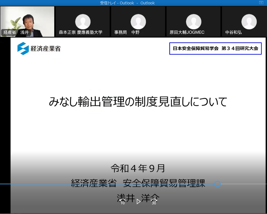 - (1) 浅井 洋介氏から「みなし輸出管理の制度見直しについて」と題し報告があった。