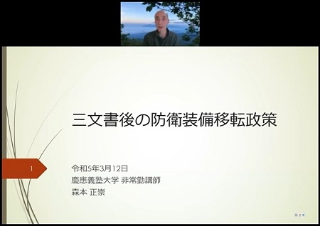 - (2) 森本 正崇氏より「三文書後の防衛装備移転政策」として報告があった。三文書の防衛装備移転に関係する部分について検討を行った。国家安全保障戦略では同盟国・同志国との連携を強化し、力による現状変更等を抑止する手段として防衛装備の共同開発や移転が明示されているが、具体的な見直しは今後の課題とした。国家防衛戦略で防衛生産・技術基盤は防衛力そのものであり我が国に必須のものとしたこと、防衛力整備計画で経済性を明示したことは画期的であるとした。一方で、防衛装備移転・輸出の抜本的拡大と装備品修理改善のためにはさらなる検討と改善が必要とした。